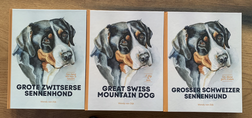 Mijn boek: "Grote Zwitserse Sennenhond; Een hond om van te houden" is uit. Prachtig vormgegeven, hardcover met leeslint en meer dan 130 bladzijden informatie en prachtige foto's en tekeningen. Hartelijk dank voor iedereen die me geholpen heeft bij deze reis.